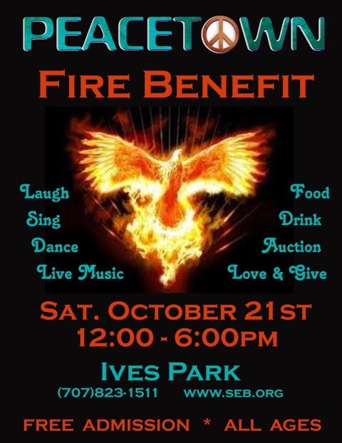 Oct 21 - Peacetown Fire Benefit, Sebastopol, 12PM: This Saturday, enjoy an afternoon of singing, dancing, live music and more in a benefit event for local fire victims. Admission is free to this all-ages event, happening noon to 6 p.m at Ives Park in Sebastopol. Find out more at seb.org.