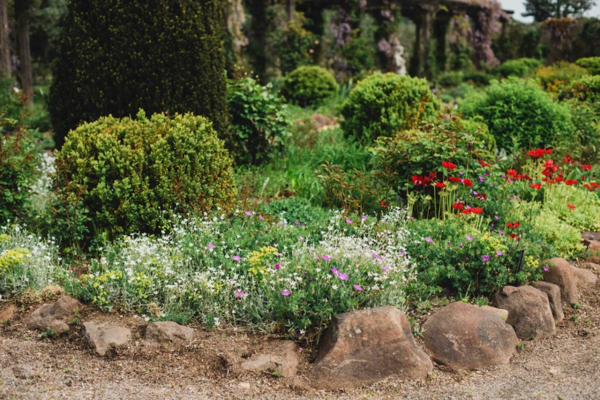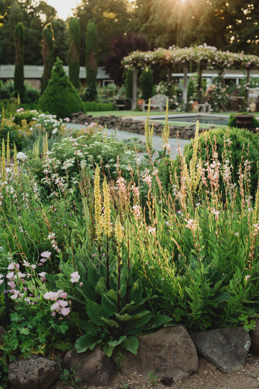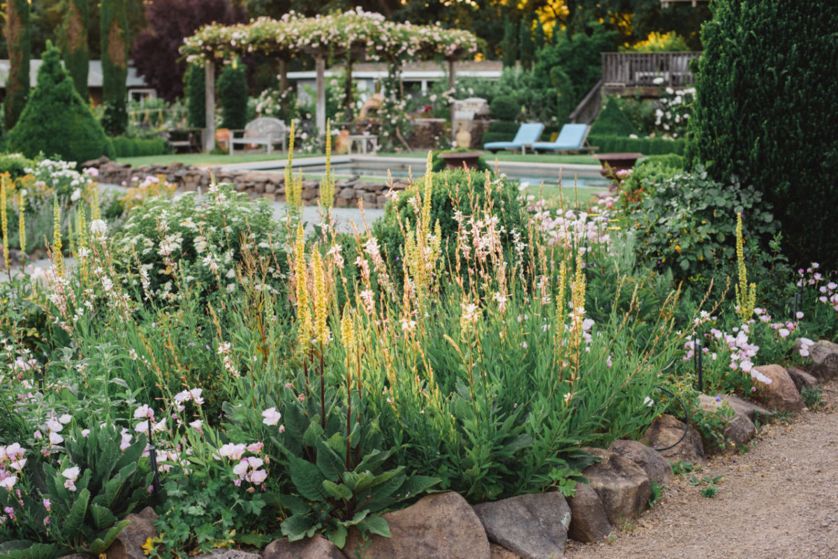 Traveling back and forth from their nursery day jobs in Half Moon Bay up to Sonoma provides a welcome change of pace for Ron and Chris, particularly now when the wisteria is blooming and the olives are preparing to flower. “Things move forward so quickly in spring. The bulbs are first, and then the wisteria hits, and everything is so lush and green,” says Chris. The couple loves getting to garden in a climate so different from that of their nursery. For the first few seasons, they were surprised at how quickly things grew — roses and other perennials doubled in size in a single year, and peppers and tomatoes went gangbusters in the summer warmth.