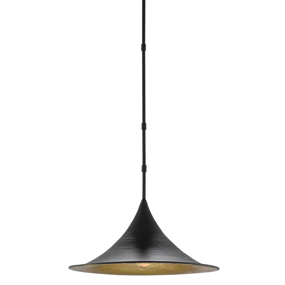 Contrast couture: This clean-lined brass pendant has a treated black satin finish, creating beautiful contrast that still feels neutral. $498, Cokas Diko Home Furnishings, 1125 W Steele Ln, Santa Rosa, 707-568-4044, cokasdiko.com (Cokas Diko)