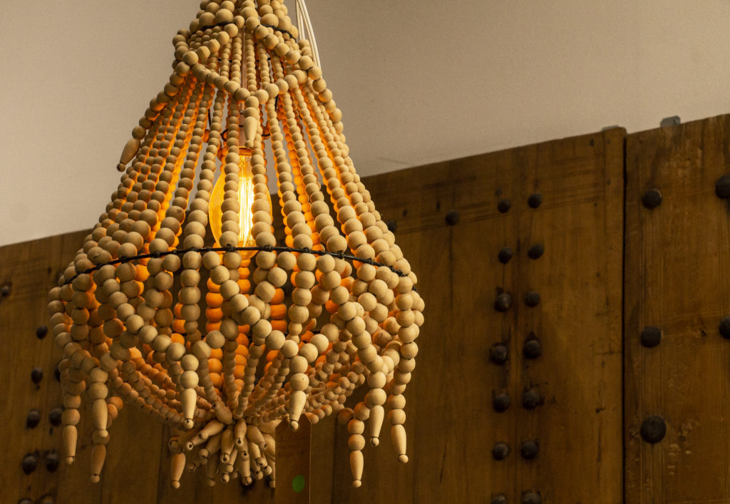 Beaded beauty: This wood-bead beauty is understated in tone but intricate in pattern. It would be at home in a traditional or modern setting. $800, Bay' Ti Home, 1 Fourth St., Petaluma, 707-774-6561, baytihome.com (Karen Kizer)