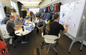 The high-ceilinged offices with exposed I-beams have floor-to-ceiling windows that allow in plenty of natural light. About 100 employees work in the environmentally friendly, LEED-certified building, their tasks including product research and design, development and testing, and sales and marketing. Manufacturing takes place at other sites in the U.S. and at company-owned factories abroad, according to CamelBak marketing manager Seth Beiden.