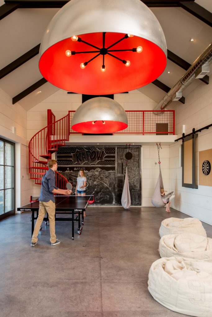 Toward the road, the barn, greenhouse and chicken house present a public face and contain the farmstand operations. A driveway winds steeply partway up the hill to a private guest house with a breezeway and porch looking out over the numerous valley oaks. The family currently uses this building as a home base while they wait to build a main house. Then the drive tops out at the ridgeline, with a jaw-dropping pool and pool house, plus a garage and play barn for the kids, all organized around a central courtyard and adjacent to a county park. (“You see a lot of shooting stars from up here,” says Chris.)