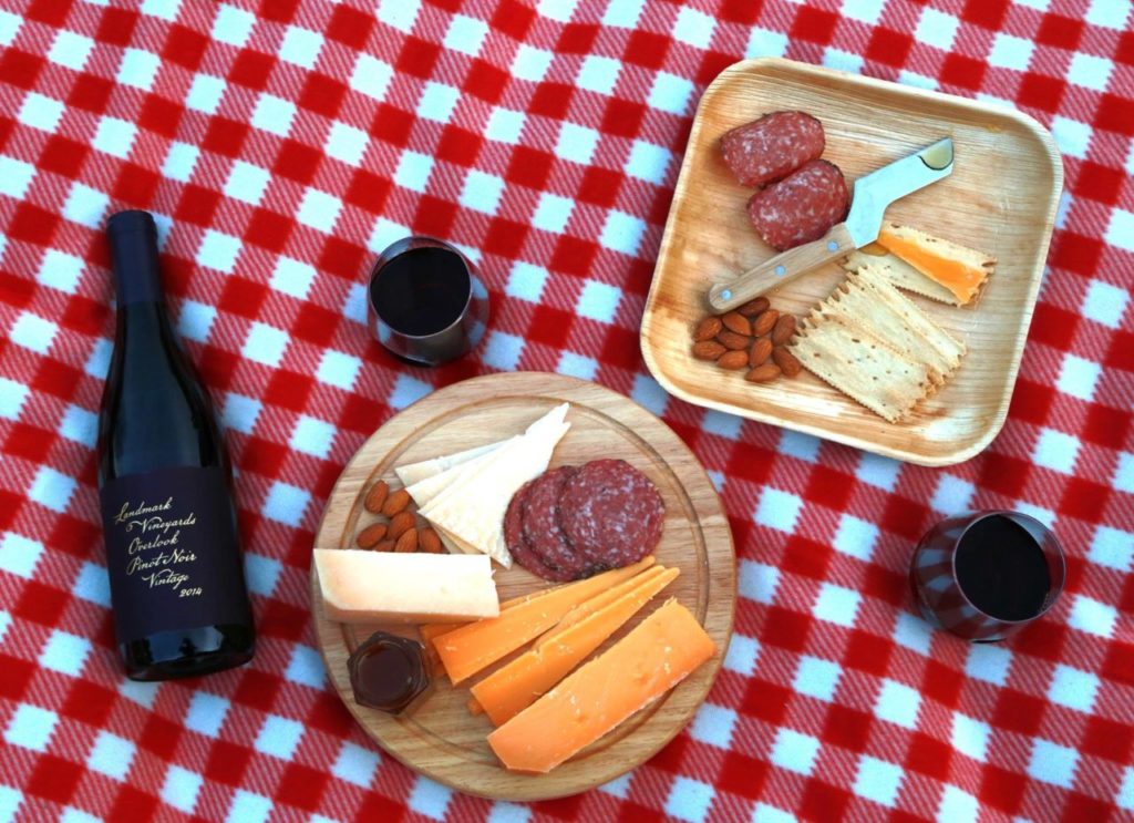 Landmark has picnic tables scattered throughout the property. The winery sells a variety of local cheeses, charcuterie and accoutrements, and gourmet popcorn available. Visitors who want to enjoy a bottle of wine on property instead of a formal tasting are required to purchase a bottle service package that includes an ice bucket and 2 Govino glasses to take home and a 90-minute table reservation. Packages start at $45 plus the cost of the bottle selected and $5 for every extra guest up to 6 people. (Courtesy photo)