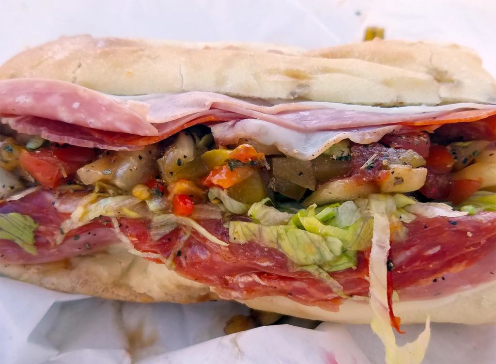 Italian Subs! Piles of mortadella, capicola, “hots” and not a dab of mustard in sight with a perfect hoagie roll. Bad delis have given this classic a bad name. The “half” however, is bigger than your arm, and you’ll likely eat the whole thing. The whole is, well, bring a team to help you.