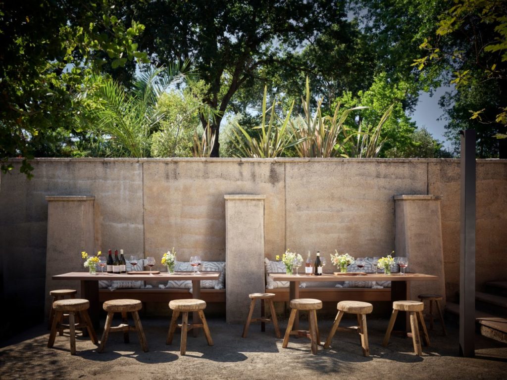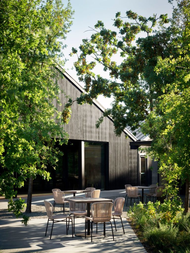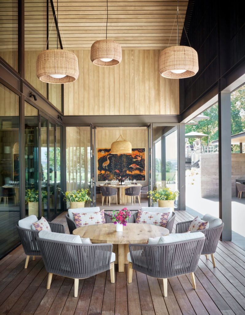 Just south of downtown Healdsburg, the sprawling 15.5-acre property features a main hospitality house nestled into a grove of redwoods, an on-site winemaking facility, indoor and outdoor seating, gardens and a wood-fired oven.