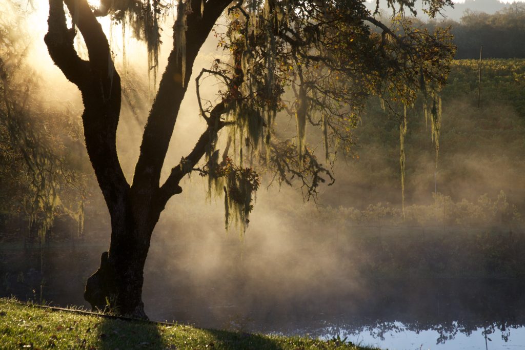 Listeners are encouraged to walk the one-mile audio tour at their own pace, ultimately making their way to more than a dozen stops or points of interest. The recording highlights the biodiversity of the ranch property, from the olive groves and vegetable garden to the native oak woodlands. Observant visitors can still see burn scars from the 2019 Kincade fire, which burned through wooded areas on the property and destroyed 20 percent of its vineyards. “The fire was a pivotal moment for us,” says Morison on the recording.