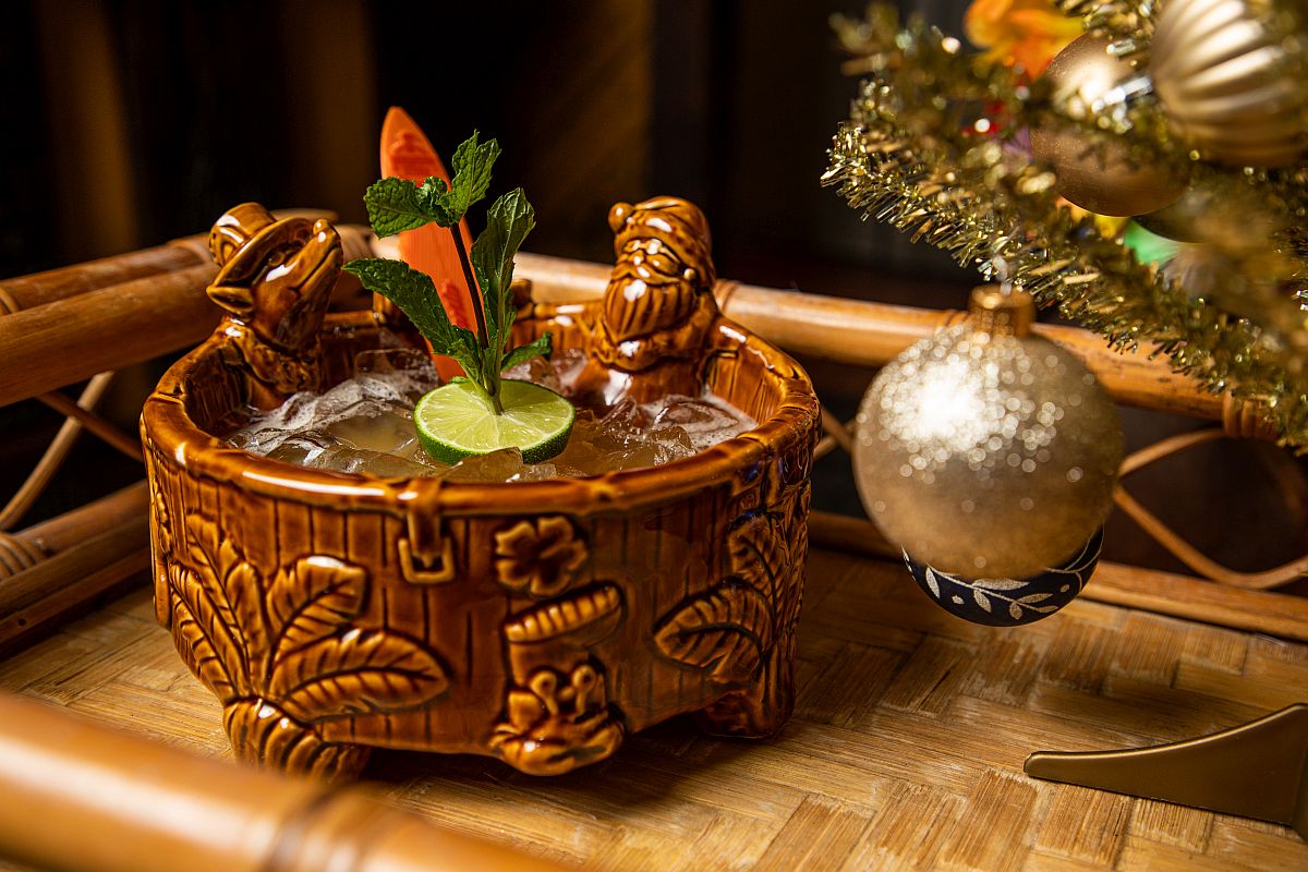 Nine tropical cocktails, served in kitschy, holiday-themed glasses and vessels, are on the menu. Guests can toast the season with drinks like the Kris Kringle Colada (dark Jamaican rum, Amara, allspice liqueur, lime, pineapple, cream of coconut), Yule Tide (tequila, Applejack, lime, maple-cranberry syrup) and Top Shelf Elf (house-spiced rum, falernum, cinnamon).