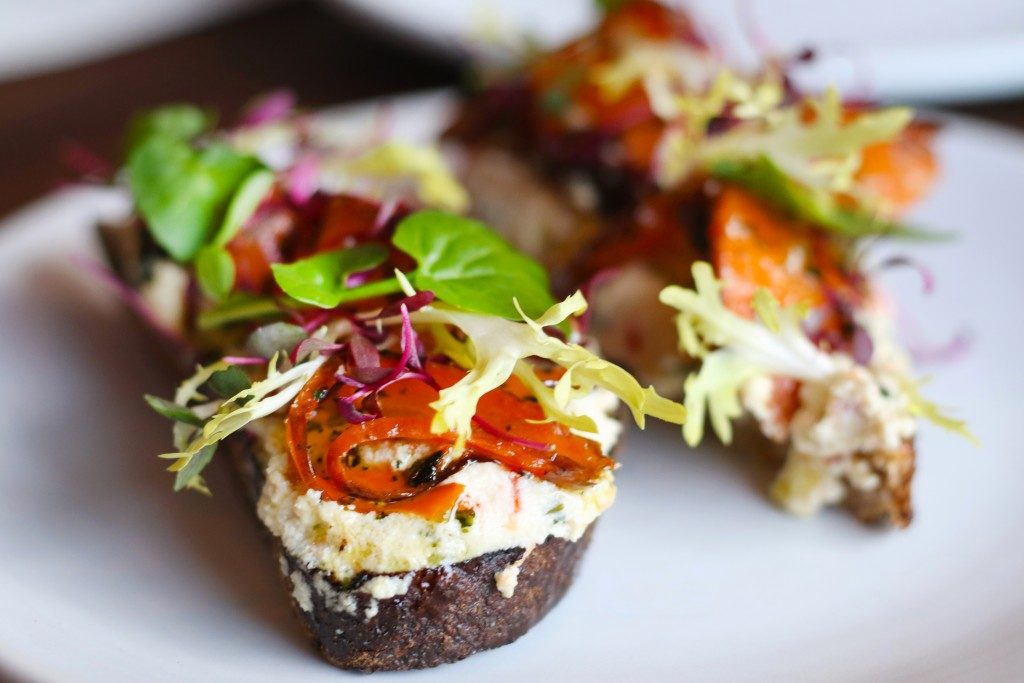 The menu is divided into small plates, entrees, snacks and sweets, with nothing over $30 and most dishes hovering between $11 to $18. Snacks are all under $8 and desserts are all $9. Favorites from our winter visit included smoked carrot lox ($12), charred sweet potato ($12), grilled chicken kofta ($13), shepherd’s pie ($18), duck cassoulet ($18), the BBQ veggie burger ($16) and sheep yogurt panna cotta ($9). Specialty cocktails are also not to be missed.