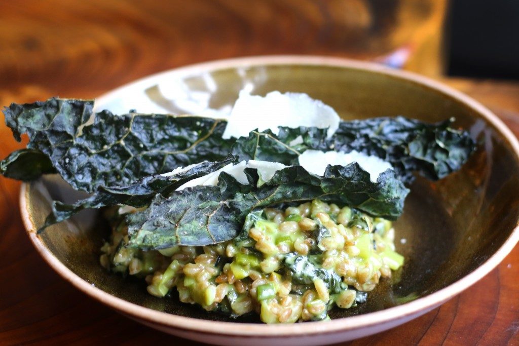 on the diets of the world’s longest-living cultures along with ancient food preparation techniques. “Minimally processed ingredients, rich in phytonutrients, often showcasing heirloom varietals, sourced locally — without sacrificing flavor,” Wiggins says. Even the cocktails follow the theme — woodland fantasies with spruce, spirulina and even porcini mushrooms as ingredients from mixologist Jennifer Grossbard.