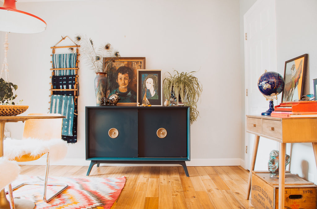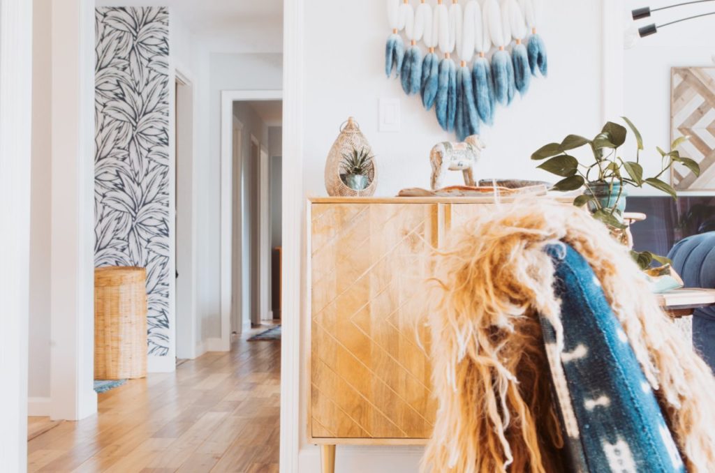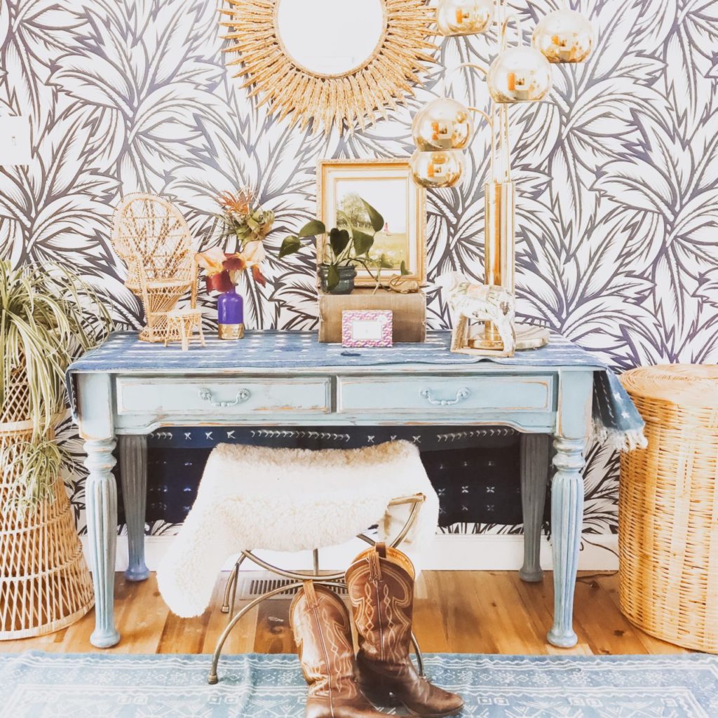The latest trend within the vast universe of boho is one that incorporates lots of botanicals. Aptly named “jungalow,” Parker believes this is a style that will stick around for a while – she sites Justina Blakeney’s work and popular Instagram hashtags like #thecrazyplantlady as influences; her own ode to Jungalow is botanical, peelable wallpaper in her entryway.