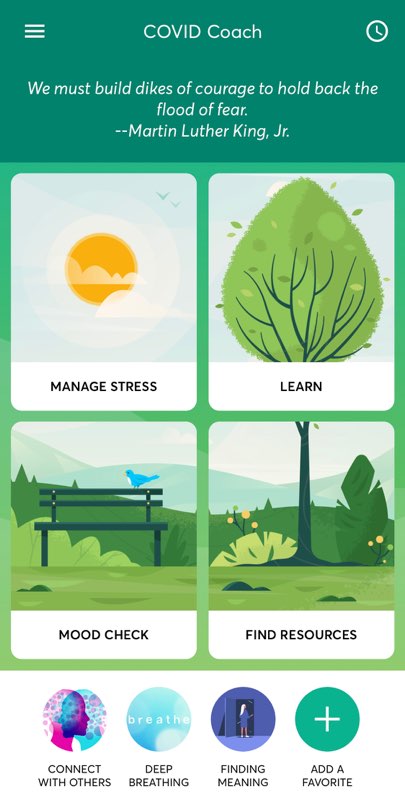 Steinmetz added that, to her knowledge, COVID Coach is the only app that has been specifically developed to offer mental health resources to people dealing with the effects of the coronavirus.