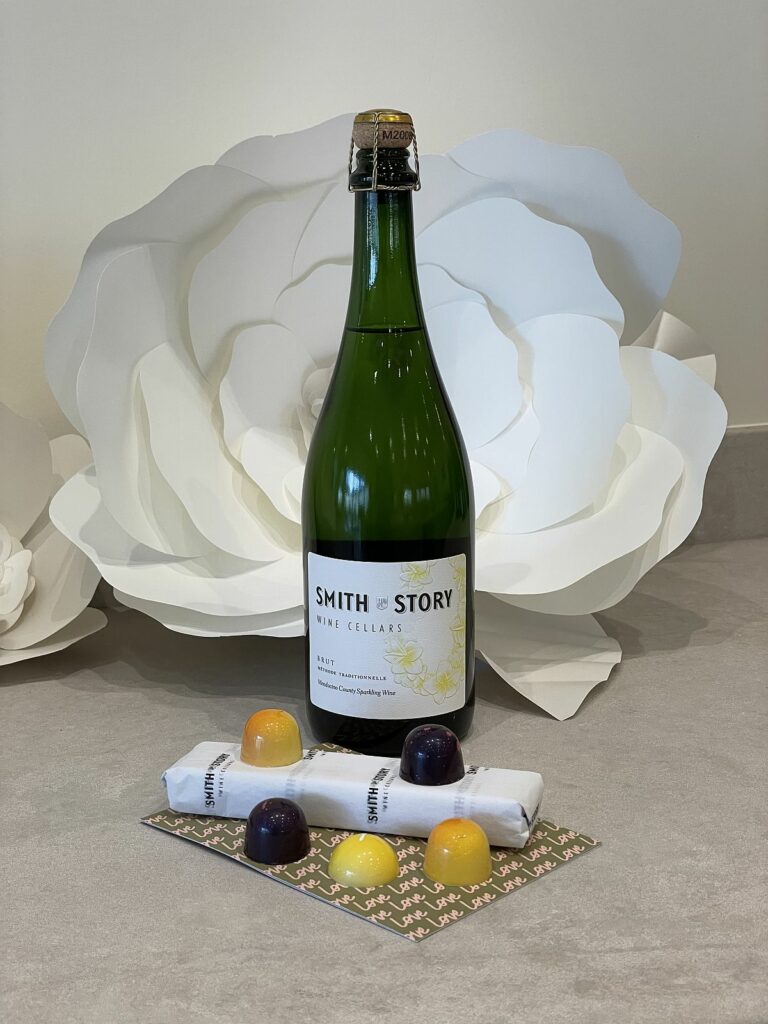 Can’t make it to Healdsburg? The first 50 people that order a bottle of Smith Story Sparkling Wine receive a complimentary five-piece gift box of Fleur Sauvage Chocolates. (Courtesy of Smith Story Wines)