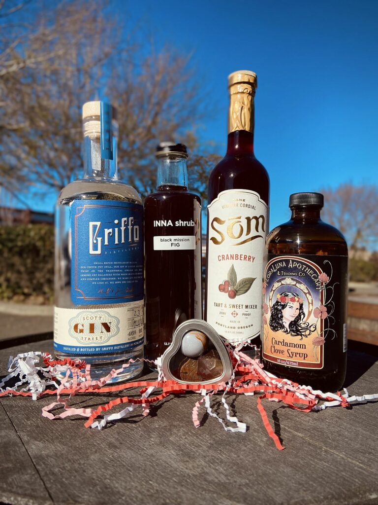 Chocolate and Spirit Cocktail Kits from Griffo Distillery in Petaluma: Although the distillery is currently closed for tastings, Griffo is offering two cocktail kits for its fan base through online ordering. The Old Fashioned Valentine Cocktail and Chocolate Kit (pictured) boasts everything you’ll need to mix up the perfect cocktail, and three Fleur Sauvage bonbons. Bonbon flavors are: Orange Dark Chocolate, Mexican Chocolate, and Molasses and Chicory. $117.50. 1320 Scott St., Suite A, Petaluma, 707-879-8755, griffodistillery.com (Courtesy of Griffo Distillery)