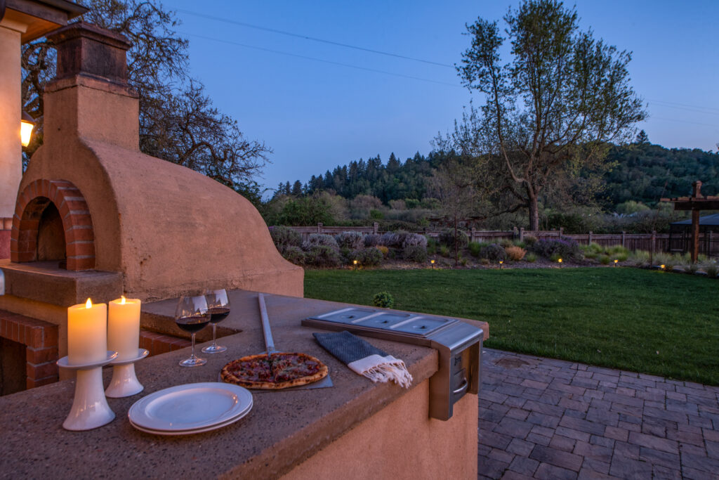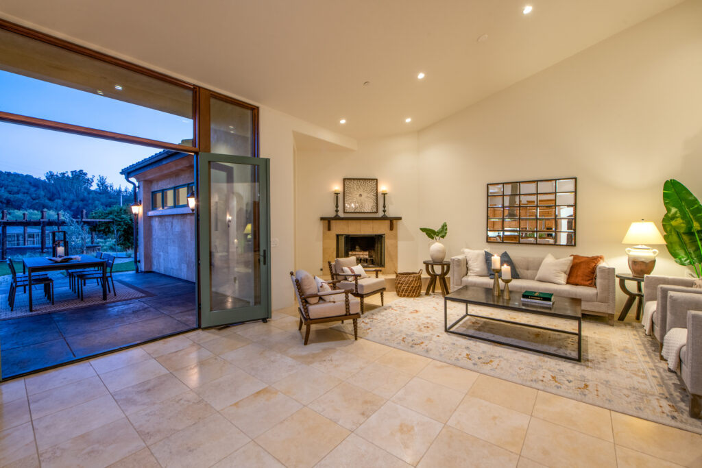 A built-in wood-burning pizza oven, a bocce ball court and a trellised swim spa make the property feel even more like a retreat. The great room is separated from the patio by large windows and French doors that allow for a seamless transition between indoors and outdoors. Click through the above gallery to view the property.