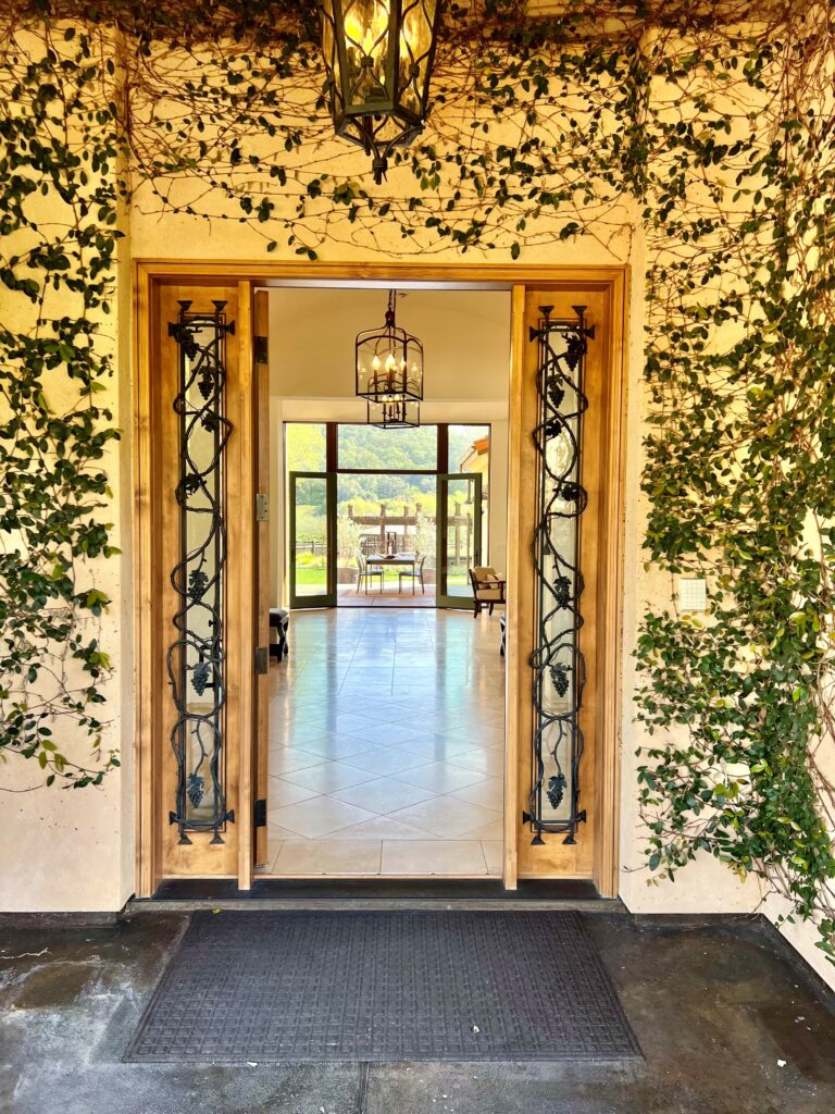 The vineyards are not part of the property but are located just outside, so vineyard views are available without the watering, pruning and harvesting that comes with owning a vineyard. The home, built in 2008, references a classic Mediterranean villa with clay roof tiles, arched windows, terracotta stucco and iron detailing.