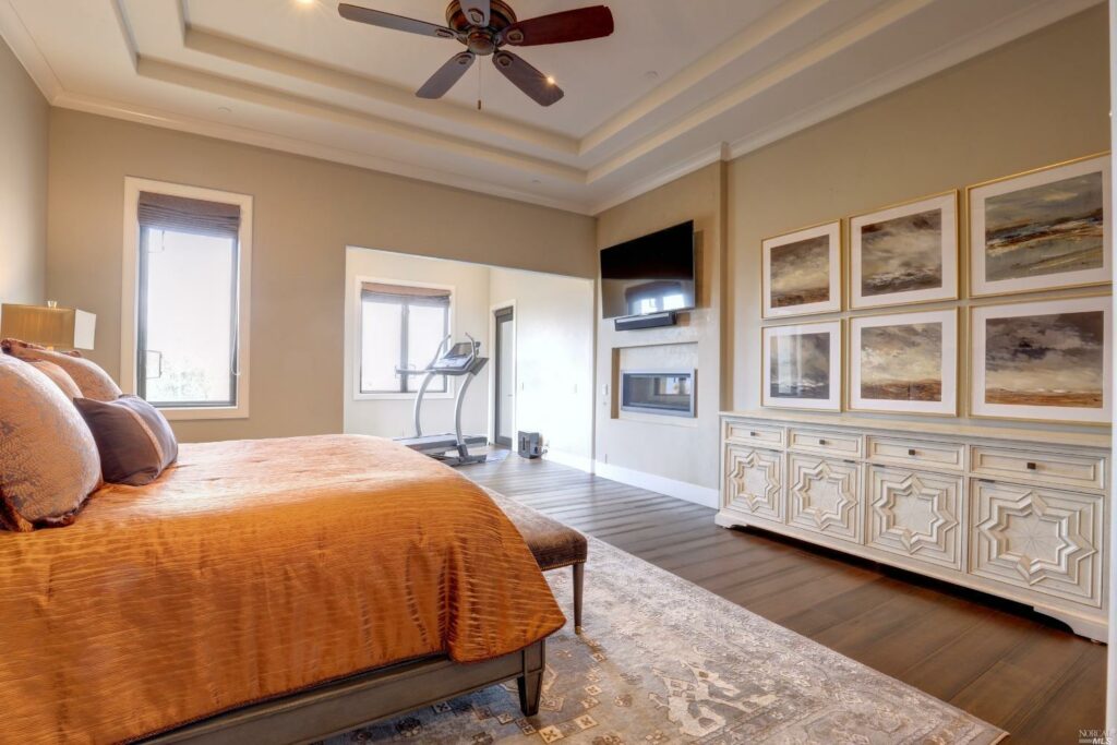 The 4000-square-foot home — designed to Barnes’ tastes by Farrell Faber and Associates architectural firm in Santa Rosa — sits high on a hill in the Skyfarm area of Santa Rosa’s Fountaingrove neighborhood. It is currently listed for $3,200,000.