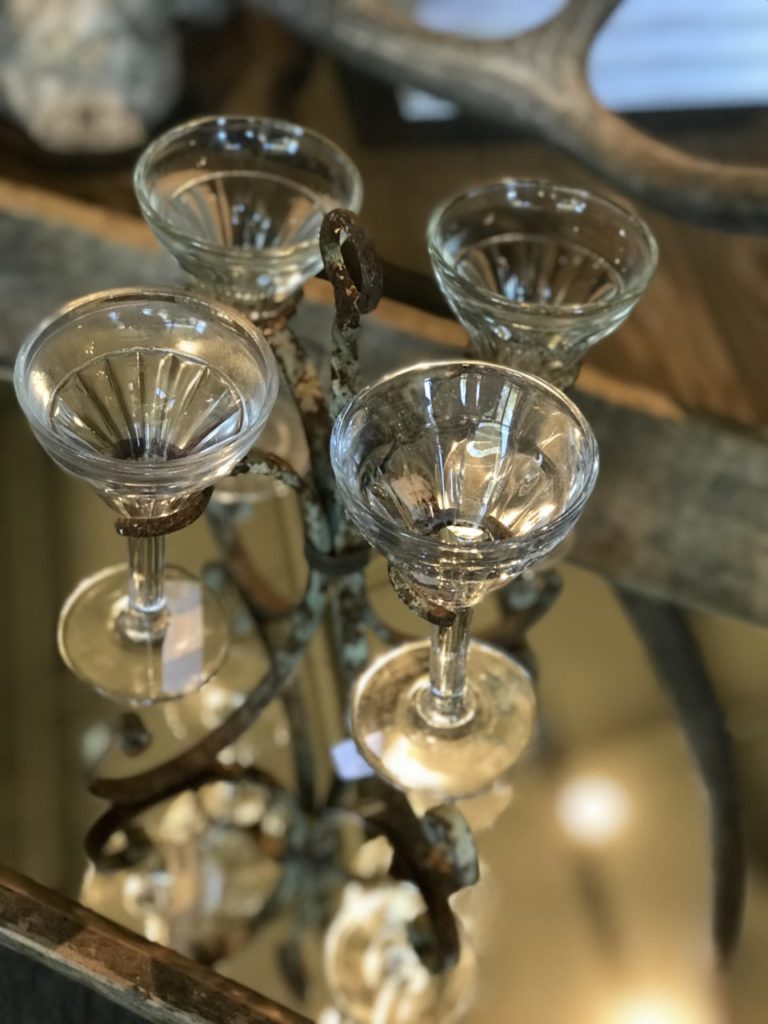 Before-Dinner Drink: Antique aperitif glasses and holder, for style interest and as a friendly reminder to go ahead and whet the appetite with a little drink. $175, Chateau Sonoma, 23588 Arnold Dr, Sonoma, 707-935-8553, chateausonoma.com