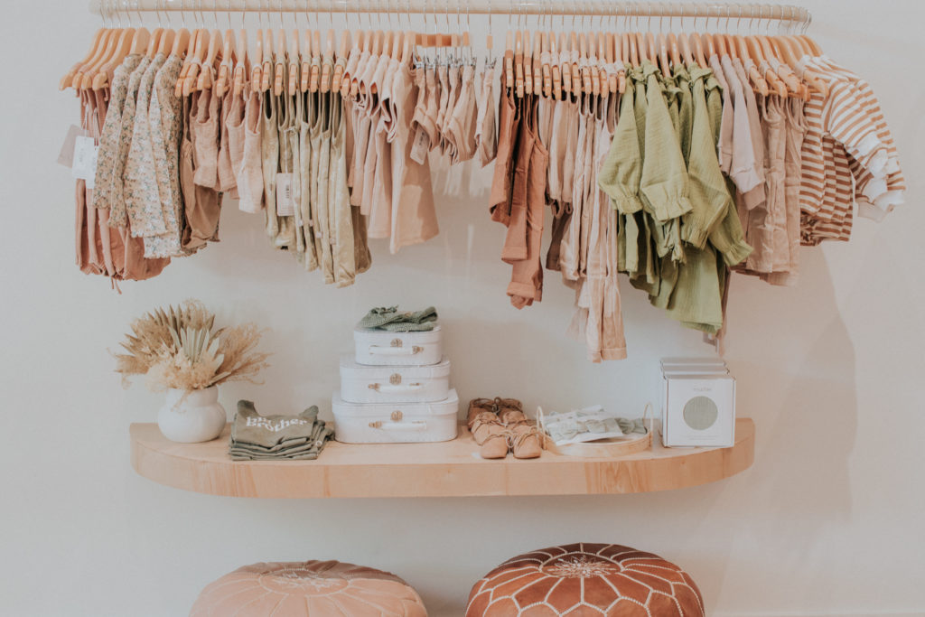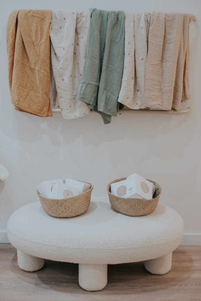 At Bon Ton Baby, neutral colors and woven baskets set the scene. The look is then enlivened by soft colors: heather greens, lilacs, blush tones, terra cottas. Dawkins stays away from the gendered colors blue and pink and her shop is gender neutral; there are no boys and girls shelves. In order to stay within her chosen color palette, Dawkins sometimes have to forgo certain items and pieces for her store or her home. For example, she had a beautiful red dress for sale at Bon Ton Studio but it didn’t fit with the look of the store. The dress was eventually sold, but it served as a reminder of how some pieces, albeit pretty, just won’t work with a cohesive look.