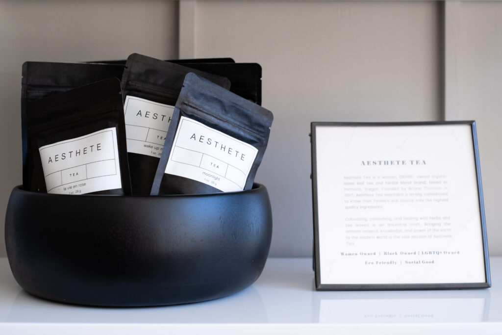 Gutierrez sources textiles, housewares, furniture pieces and gifts for her store from a variety of designers and artisans, including Oakland-based ceramist Sara Kersten, Latina-owned company Nopelara (also in Oakland), which specializes in botanicals for bath and body made from the nopal cactus, and QBIPOC-owned Aesthete Tea in Portland (QBIPOC stands for Queer Black, Indigenous, People of Color).