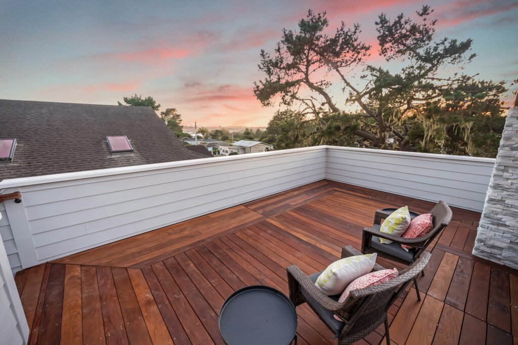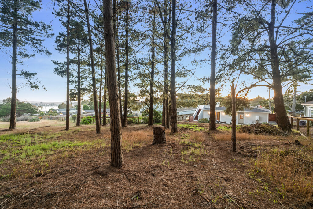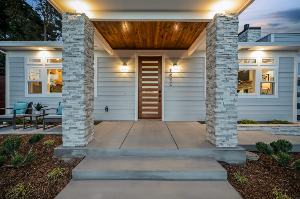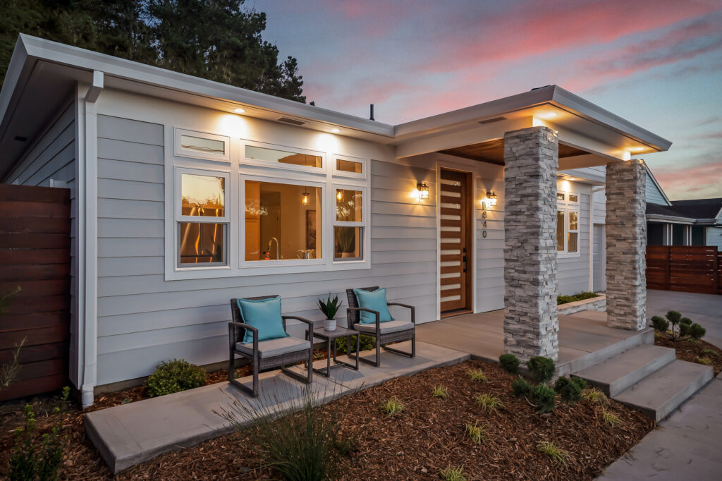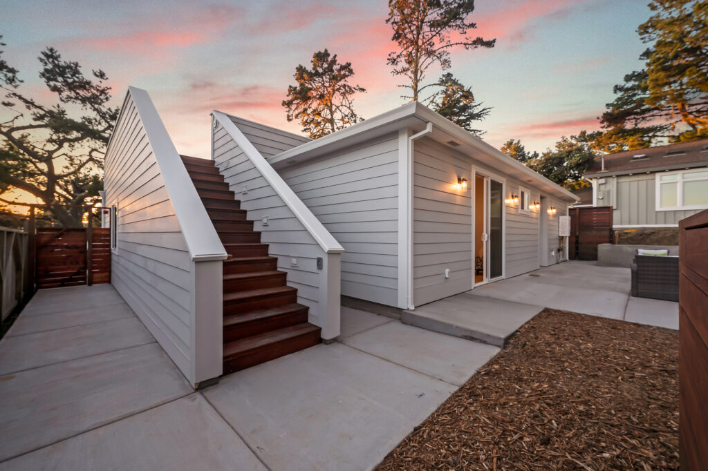 The three-bedroom, two-bath home was designed with a nod to classic Craftsman style and is currently listed for $1,350,000. The property sits on a hill along the town’s main drag, Highway 1, and has partial views of the bay beyond.
