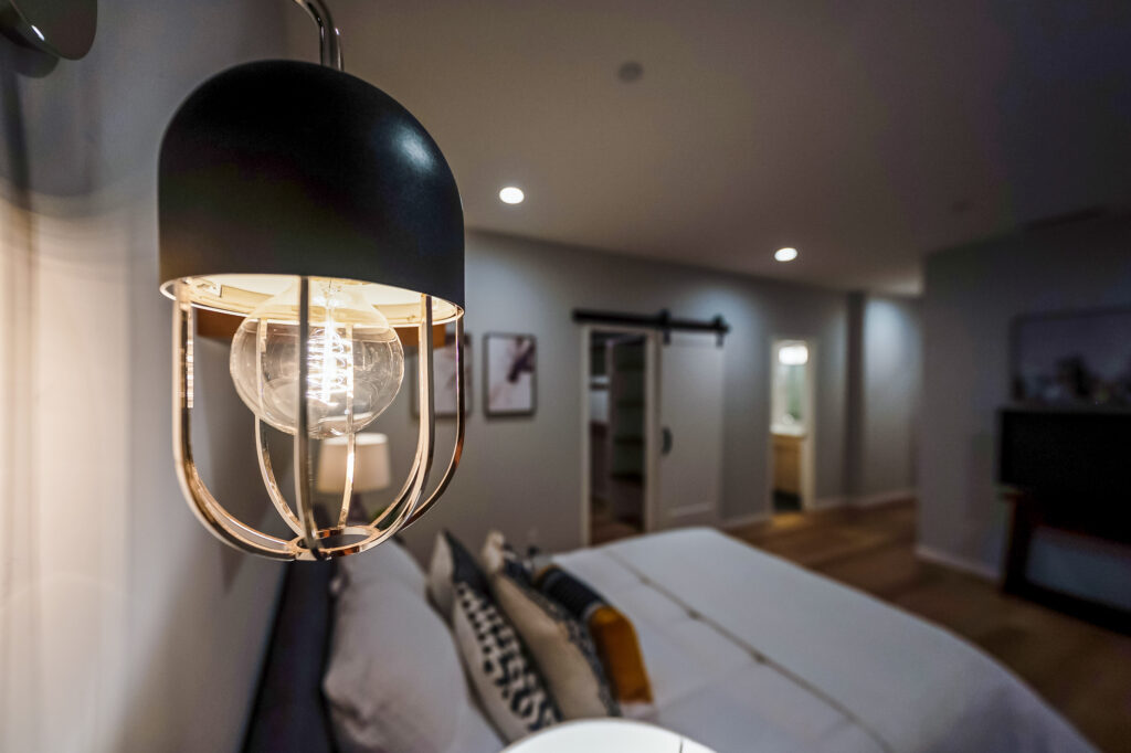 The home also features midcentury design elements, such as large slider doors. The combination of Craftsman style and midcentury design works well here, and creates a sense of openness and a seamless indoor/outdoor aesthetic.