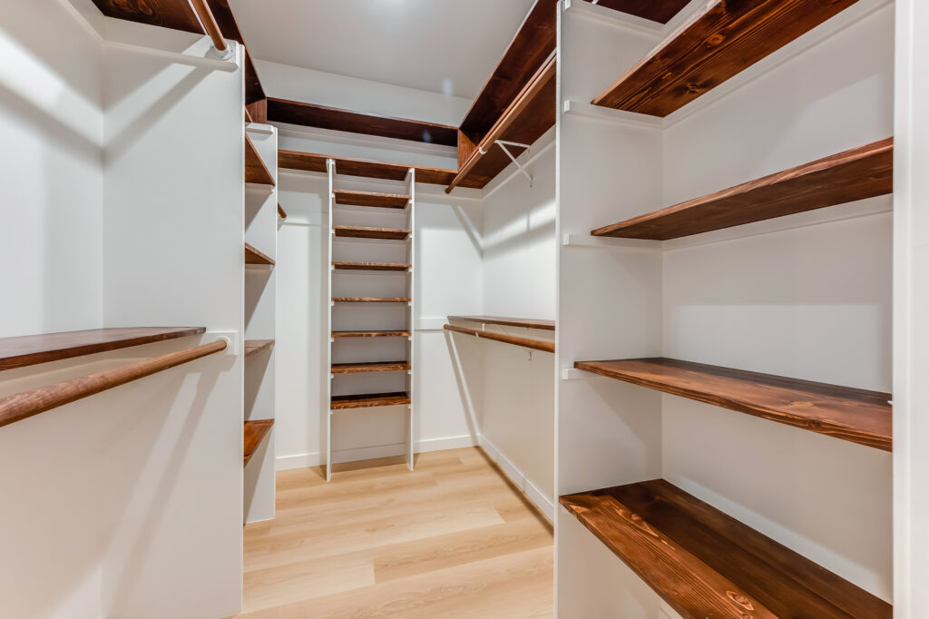There’s a gas-burning fireplace in the great room and solar panels on the roof. The small redwood groves that surround the house can be viewed from the home’s good-sized windows, many of which are double-hung, which is typical of Craftsman style. The eye-catching mahogany front door, handcrafted by a Bay Area artisan, has horizontal windows from top to bottom that allow more light into the space.