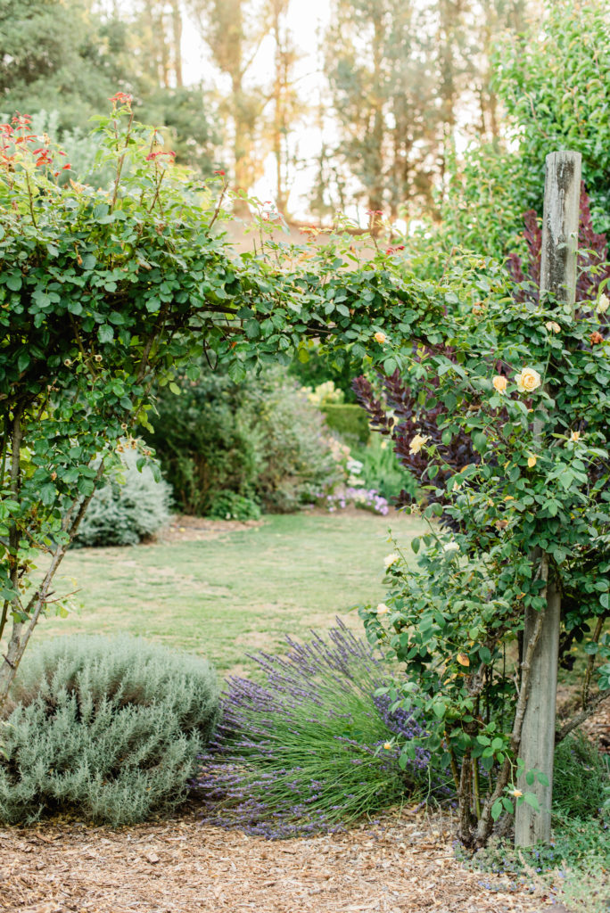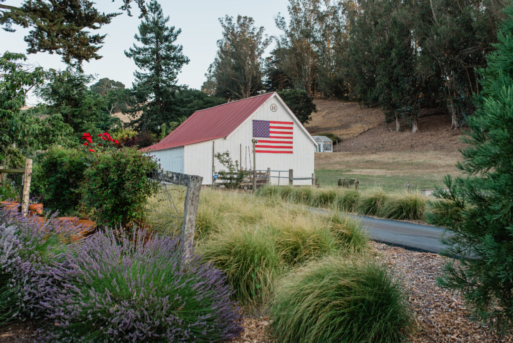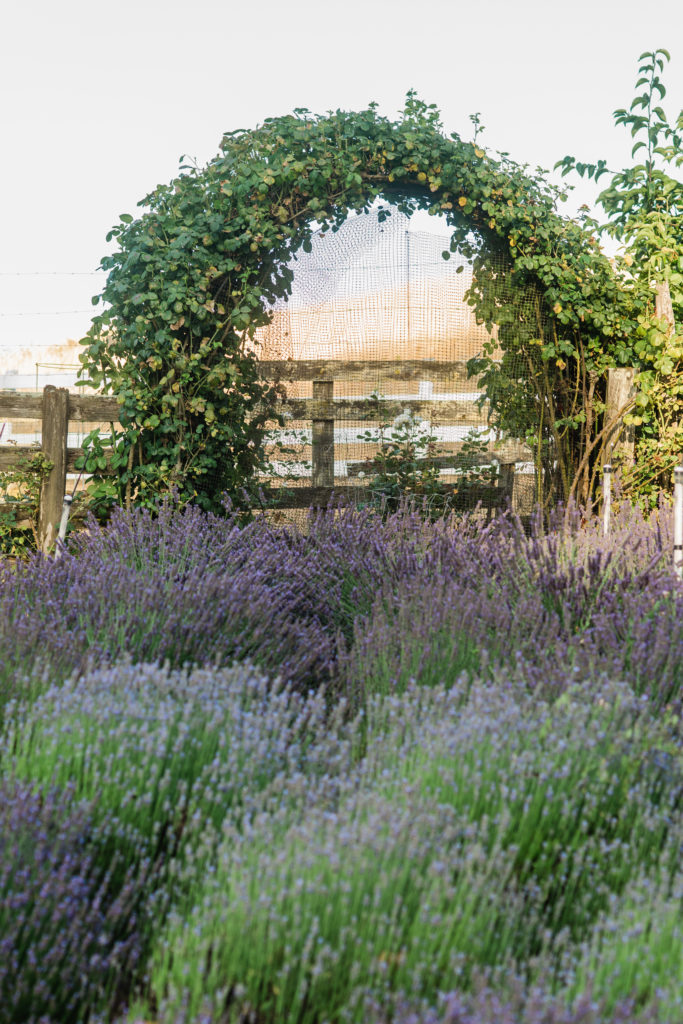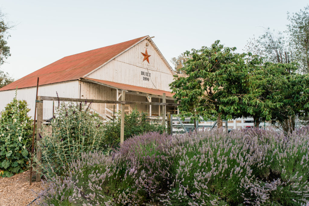 By the barns is a field of fragrant, tall Lavender ‘Grosso.’ Cathy has also created a riot of a rose garden with 400 bushes and a hot-and-sunny upper garden she’s termed “the mesa.” In the early years, she planted a small grove of redwoods, which are now massive and shade a path leading to the pasture.