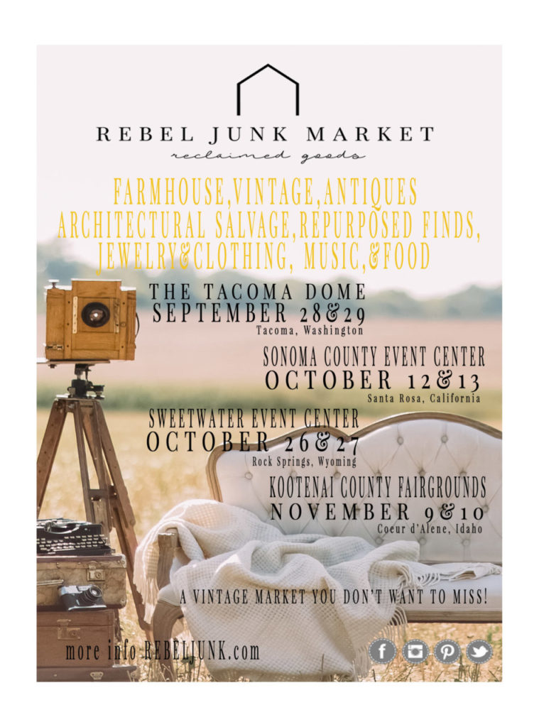 Riding into town on that resale-lovin’ vibe is Rebel Junk Vintage, with a pop-up sale of antique, vintage, farmhouse, DIY, re-purposed and upcycled items. Style seekers can shop the touring market at their Santa Rosa stop, the Sonoma County Event Center, on October 12 and 13.