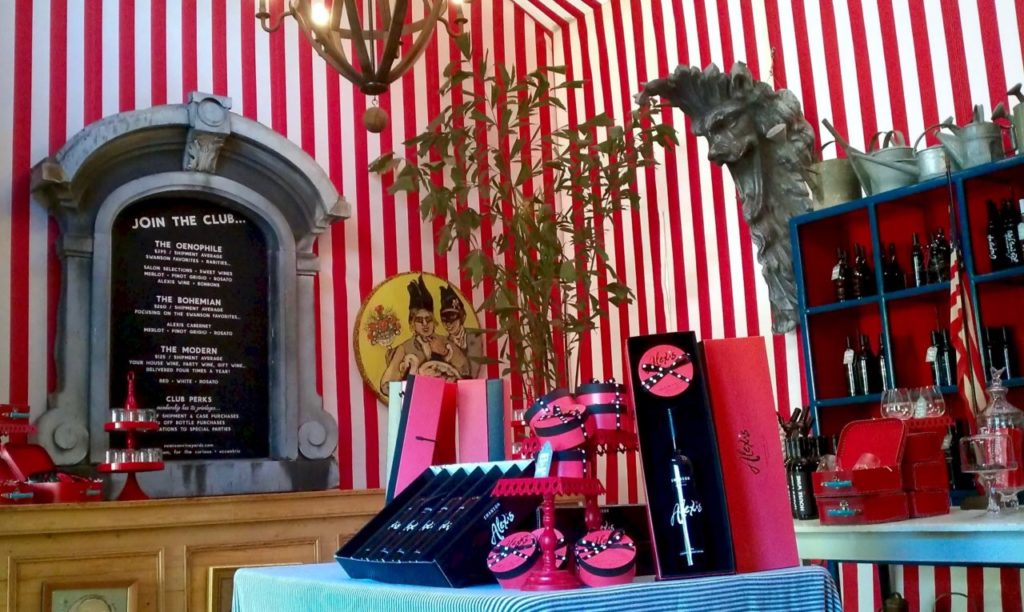 Swanson Vineyards’ Sip Shoppe in Rutherford is another romantic Napa fave. This hideaway is a magical tasting room escape from reality with its candy-cane-striped walls, whimsical art and carefully curated tastings served up in glass Dixie cups. Reservations required.