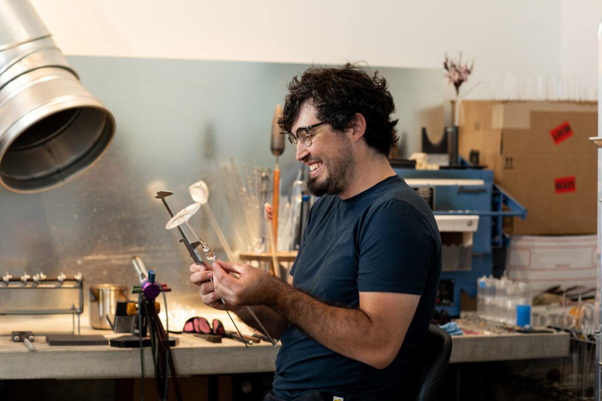 “It’s always been so cool to me that you can melt glass and change its form,” says Dickinson. “I’ve been lucky to be able to build a career around it.”