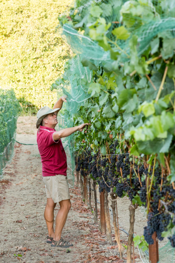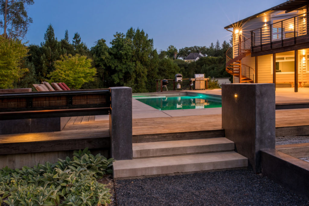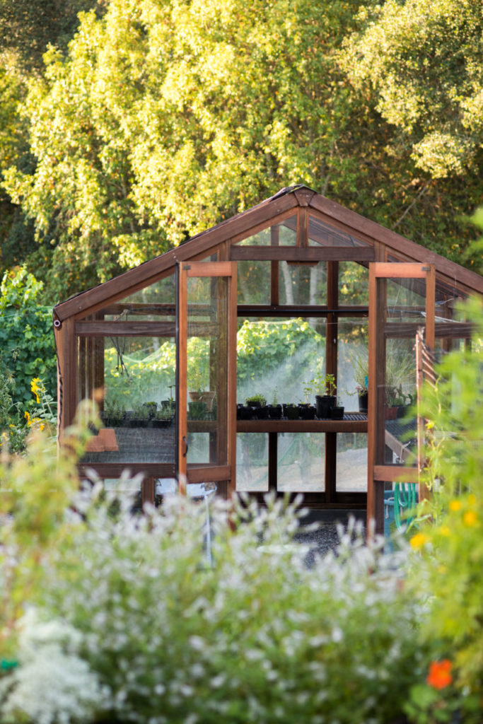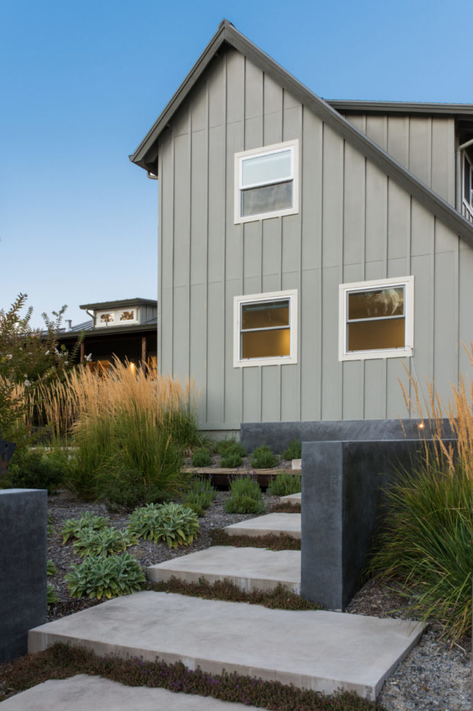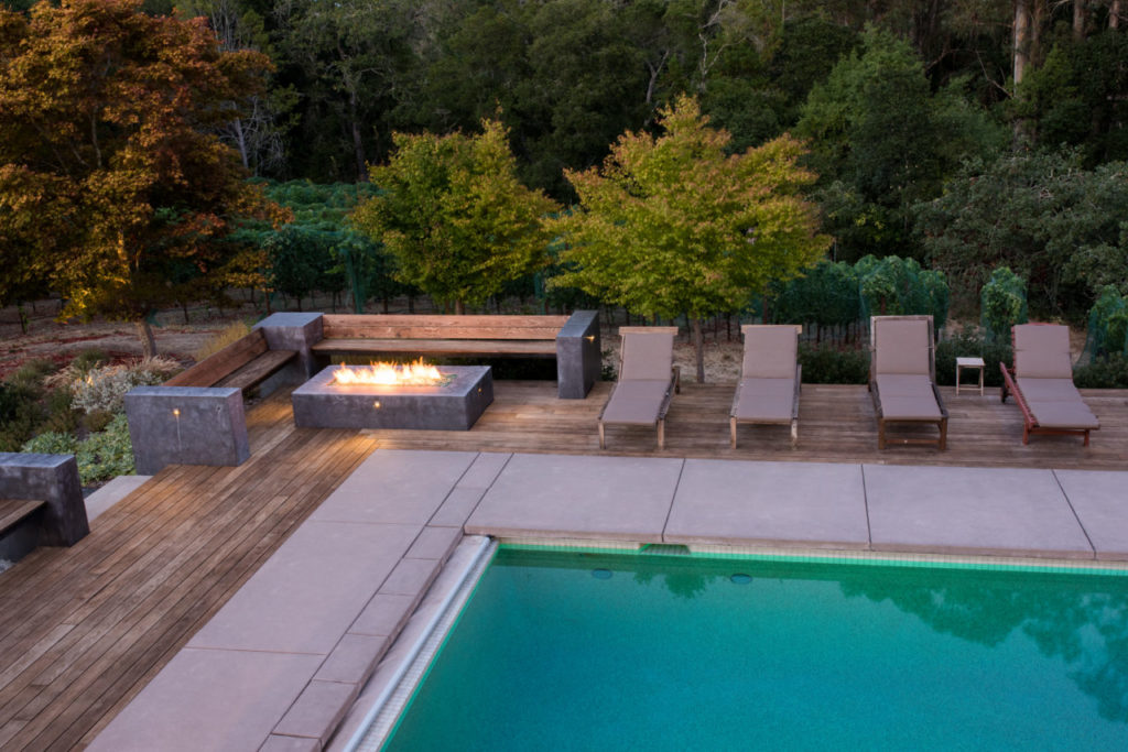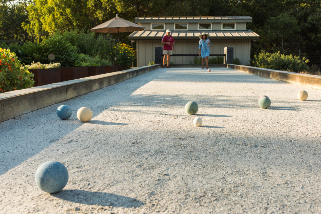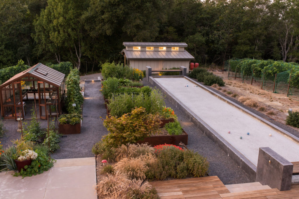 The Jenkses aren’t pining for homegrown fruit and veggies anymore. Working with landscape architects and designers Cary and Amy Bush of Sebastopol’s Merge Studio, they rehabilitated their current property’s orchards, replaced a small section of Chardonnay with a larger Pinot Noir vineyard, and added a greenhouse, bocce court, and stylish steel raised beds.