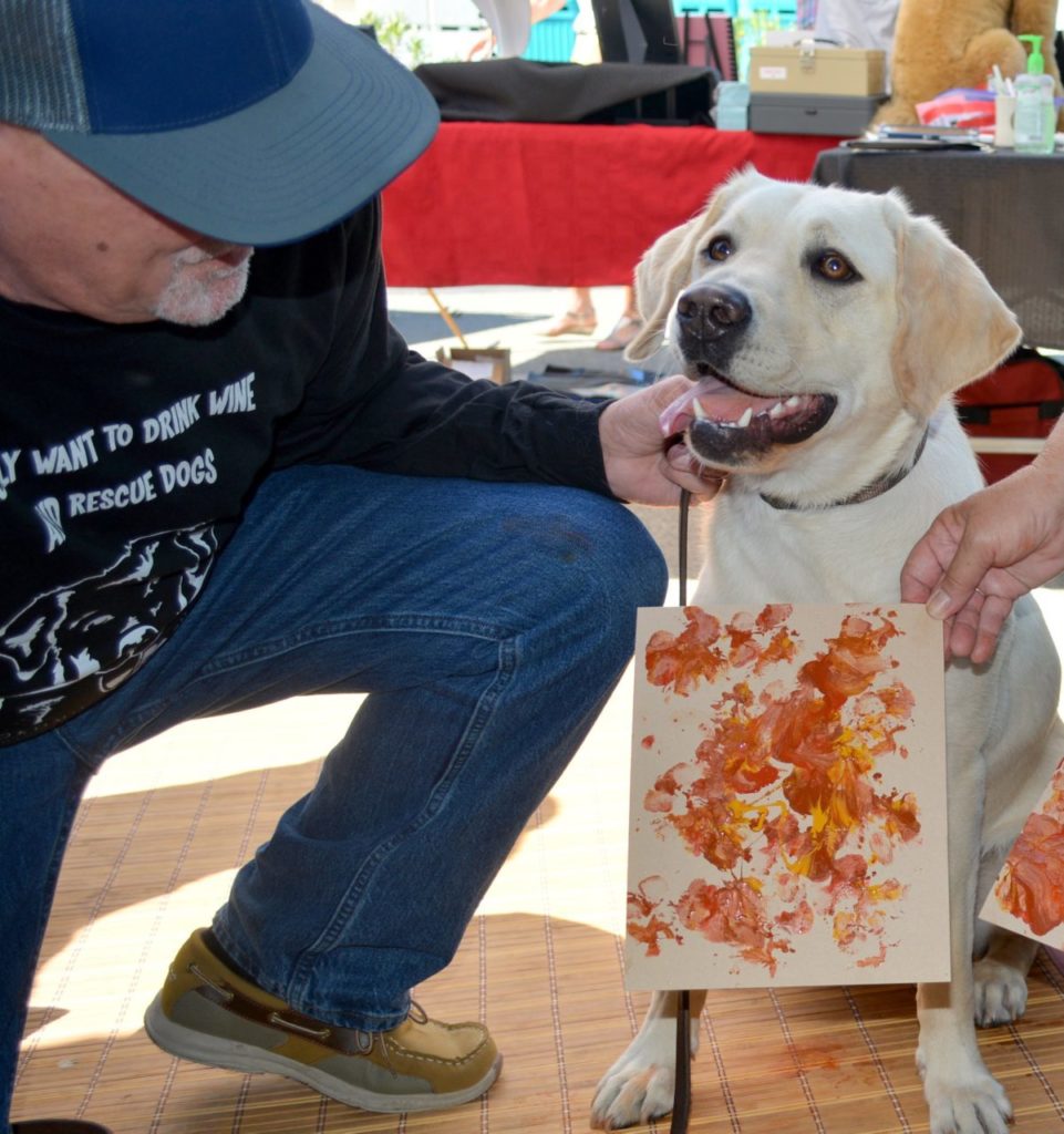 A Dog and His Artwork, Paws for Love: Paws for Love foundation, now in its 20th year, fundraises for animal services by offering art-making events for cats and dogs. For a $25 donation, Paws for Love will assist your pet in putting their paws to paint and paper to create art. Paws for Love provides funding to shelters and services helping homeless and injured animals. (courtesy photo)