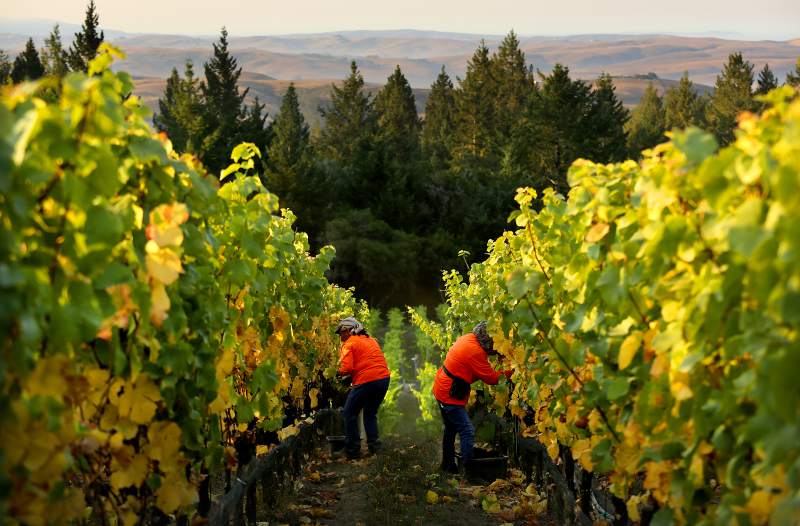 According to the Sonoma Economic Board, over 226,000 tons of grapes were picked in Sonoma County in 2016, a larger yield than the previous year, and 2017 is expected to bring even more grapes. Harvest season is a time for wine industry workers to say hello to long hours and goodbye to their summer vacations. (Photo by John Burgess)