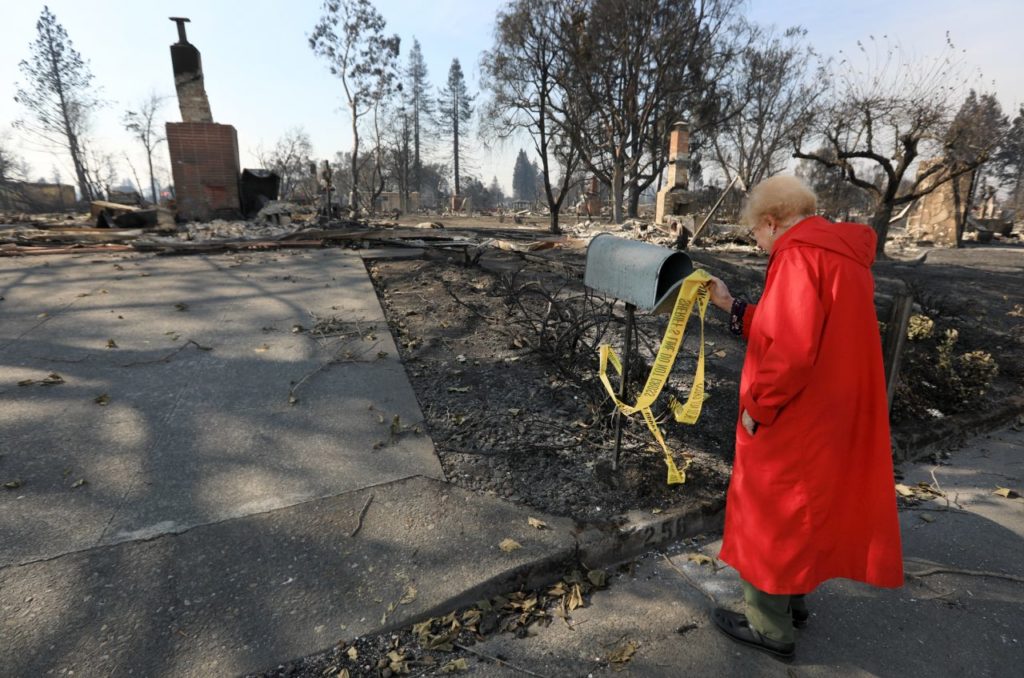 Phyllis Rogers checks for mail in front of her destroyed home in Larkfield on Monday October 16, 2017. (Photo by Kent Porter)