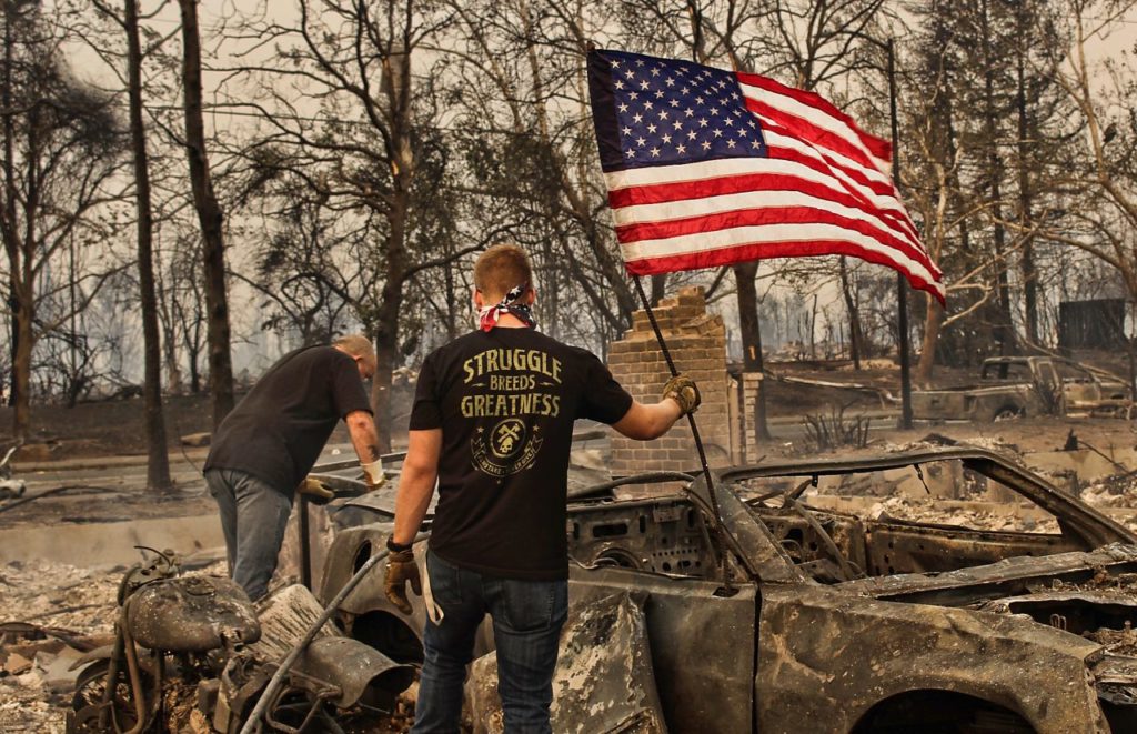 In the background, a destroyed building on the Cardinal Newman High School campus after the Tubbs fire burned through north Santa Rosa, on Monday, October 9, 2017. (Photo by Alvin Jornada).
