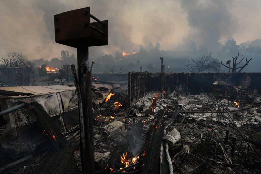 Burned mobile homes in the Journey's End park off Mendocino Avenue in Santa Rosa. (Photo by John Burgess)