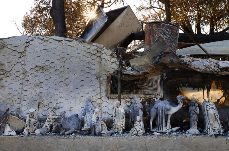 A nativity scene is one of the few salvageable items in Dr. Robert Nied's Fountaingrove area home, in Santa Rosa on Tuesday, October, 24, 2017. (Photo by Christopher Chung)