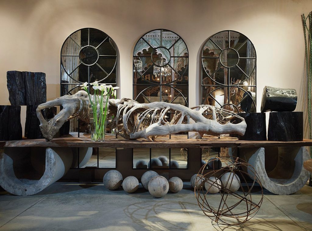 Bring the Outside In: Allen likes his pieces to function year-round, like the Java-made silvered skulls we featured back in October. His nature-focused finds come from a desire to bring the outside in. So much so, that he’s designed his own panels for attaching natural objects and shelves and lights to showcase those and other objects of interest. (Photo Artefact Design & Salvage)