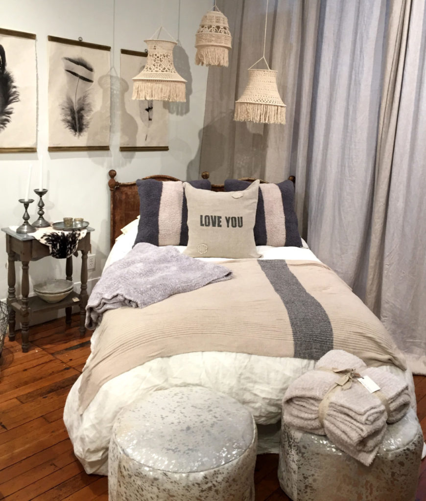 Rich in Textures: A wizard with natural stones in her jewelry-making work, Robindira sought to create “a textural environment” with natural elements in her home store. Robindira hopes her store will help others in creating their “own home of light and inspiration.” Her pieces are chosen with a high sensory impact in mind: Mongolian wool, aromatic candles, feathers and eye-catching, grandly displayed art. (Photo: Robindira Unsworth)