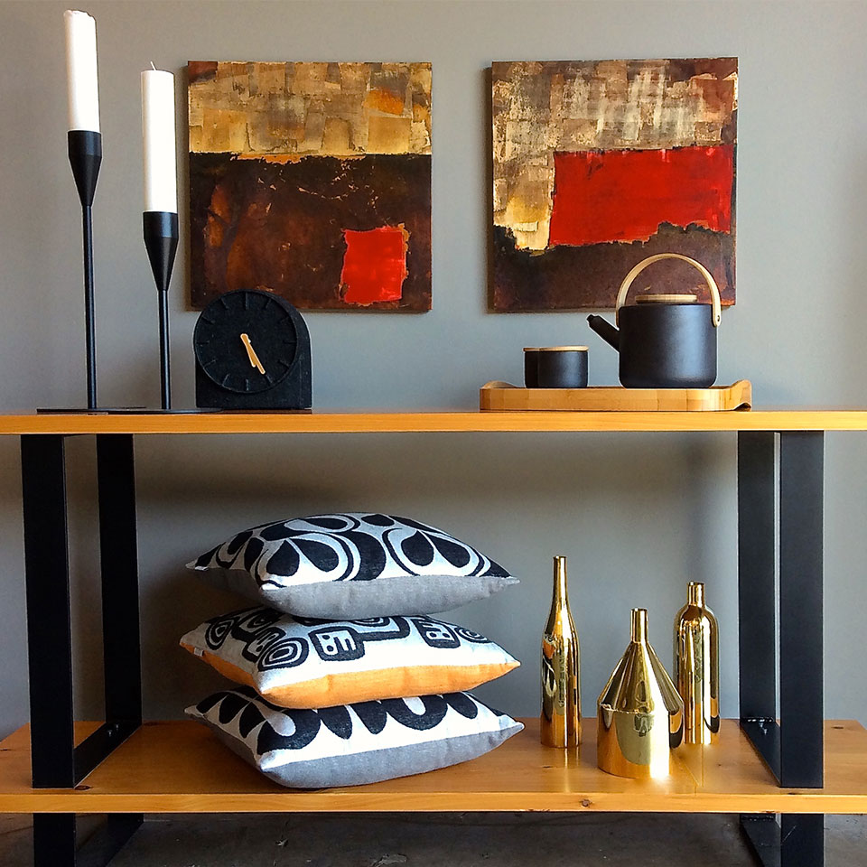 Fine Art Gallery: The Passdoor opened in 2014 featuring original works of local and regional artists, notably Wayne Berger whose artwork and furniture are sold exclusively at The Passdoor. Above is one of Berger's works, in which he used metal leaf and "secret solutions" to achieve patinas that change with the light. The later addition of home decor to the Sebastopol gallery/store is part of Jennifer Edwards’ mission to bring rare finds to the area that contribute to an uncluttered, "calm" aesthetic characteristic of Scandinavian spaces. (Photo: The Passdoor)