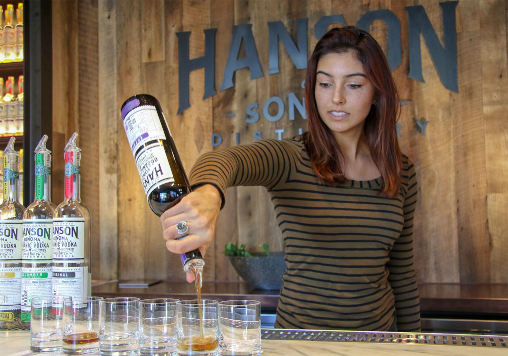 Sipping vodka cocktails in the Hanson Distillery tasting room in Sonoma, one thing is clear: Wine tasting rooms have never been this fun. Don’t get us wrong, because the hundreds of wineries from Petaluma to Cloverdale have a good thing going, and this is, after all, Wine Country. But a handful of enthusiastic local spirt-makers are creating artisan vodka, gin, whiskey and liqueurs that are putting something other than wine on the local tourist maps. And my tasty cucumber vodka gimlet with edible flowers is (literally) proof of that.