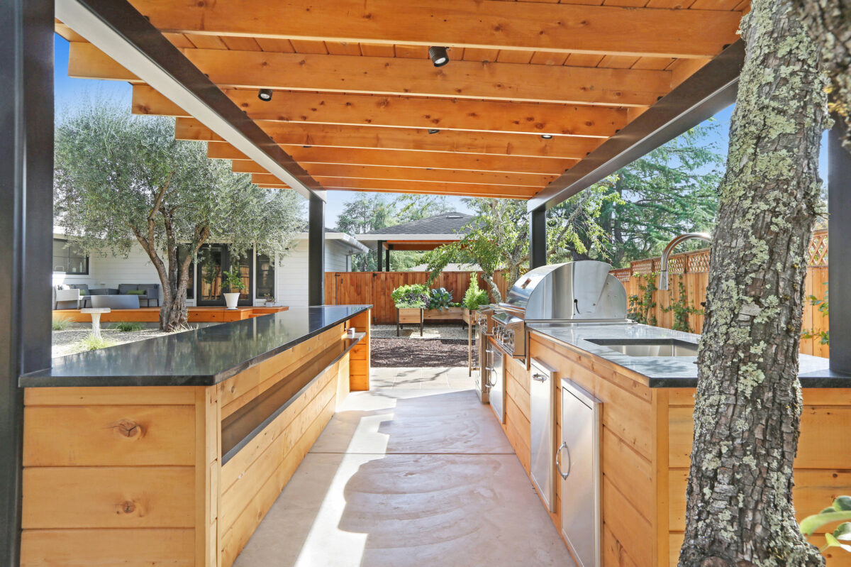 Samuel Lowe and Samuel Hayward of SDL Residential Design converted the garage into a main bedroom suite that overlooks a transformed backyard, complete with an outdoor kitchen, fountains that empty into the pool and a drought-tolerant xeriscape garden. Whitfield Construction in Santa Rosa did the construction work on the project.