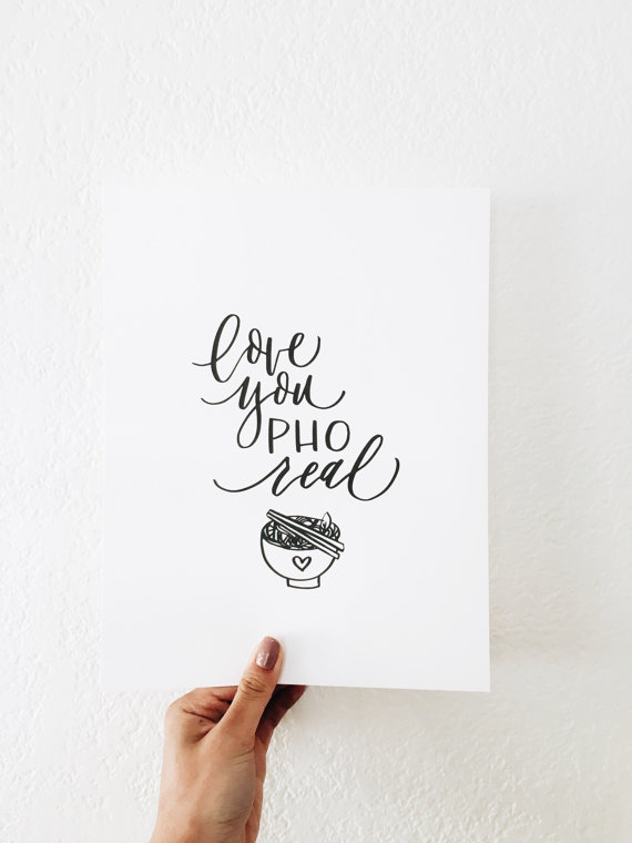 Sign of Love: Blushtype designs are as playful as they are beautiful. This 4" x 6" card is an ink-jet print of modern brush calligraphy. $5, Blushtype.com, etsy.com/ca/shop/blushtype