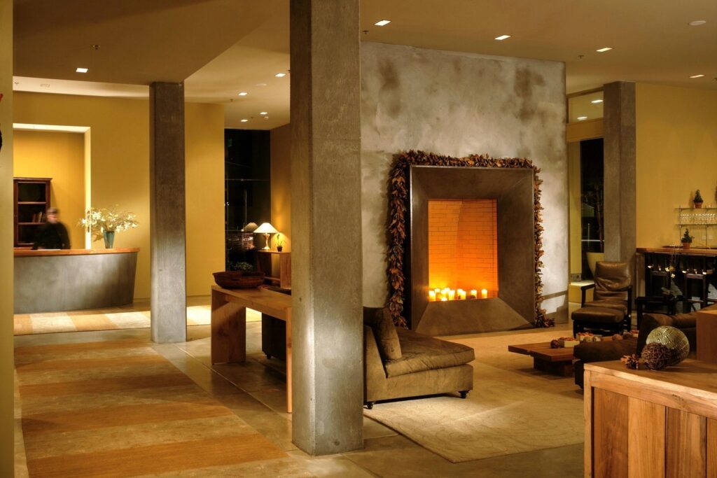 Warm treats: Gather by the fireplace at Hotel Healdsburg for holiday tea, where the beautiful glassed-in porch is decorated as a winter wonderland. House-made treats from Dry Creek Kitchen add to the warm winter vibes. 25 Matheson Street., Healdsburg. 707-431-2800, hotelhealdsburg.com (Courtesy of David Baker Architects)