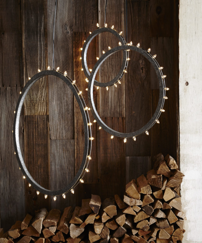 Dream Hoops: Marquee-type lights hang in rounded whimsical glory. These “Rings of Light,” made of galvanized tin, are a happy cross between the carnival, the farmhouse and contemporary design. With 15’ cords, they are easy to hang, alone or in clusters to create a chandelier. (Photo: "Rings of Light" by Roost)