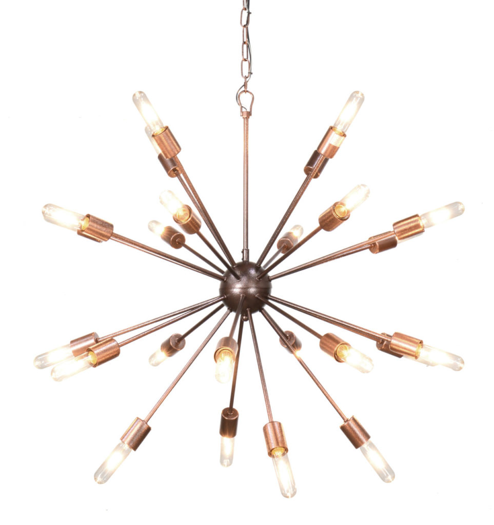 “Starburst” Style: Be a little bit Jetsons and little bit industrial - why overcommit to only one period’s aesthetic? This mid-century styled chandelier, in a contemporary brass with vintage-inspired, Edison-style bulbs, gives you big design bang for your transitional buck.
