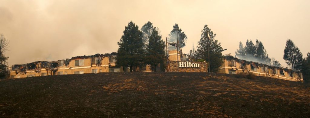 The Hilton Sonoma Wine Country hotel after Tubbs Fire burned through north Santa Rosa on Monday, October 9, 2017. (Photo by Alvin Jornada)