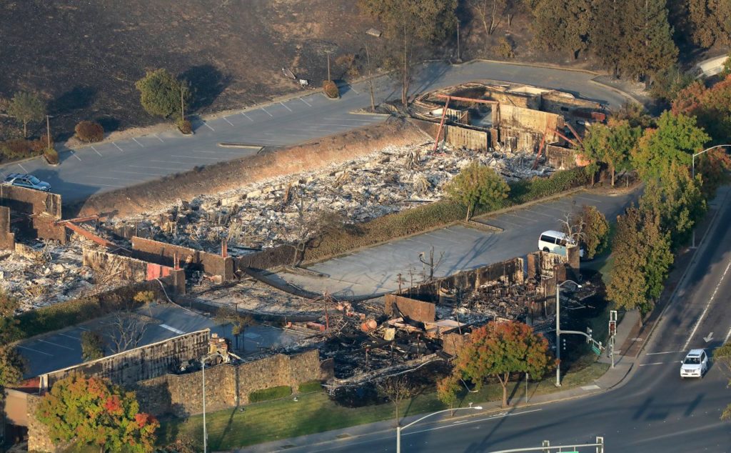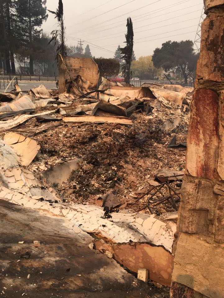 After: The burned remnants of Willi's Wine Bar, on the corner of Old Redwood Highway and Ursuline Road, in Santa Rosa on Tuesday, October 10, 2017. (Photo by Christopher Chung)