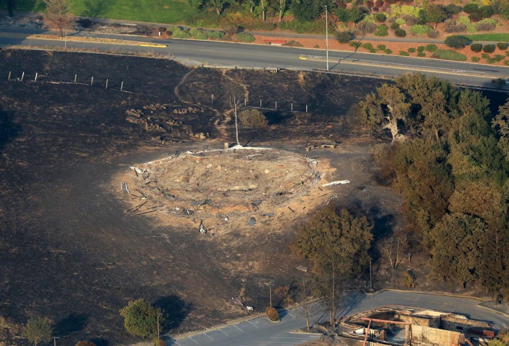 After: The historic Fountaingrove Round Barn burns in Santa Rosa, Monday Oct. 9, 2017. (Photo by Kent Porter)