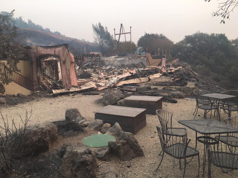 After: The patio at Paradise Ridge Winery after the Tubbs Fire burned through north Santa Rosa on October 9, 2017. (Photo via Facebook)